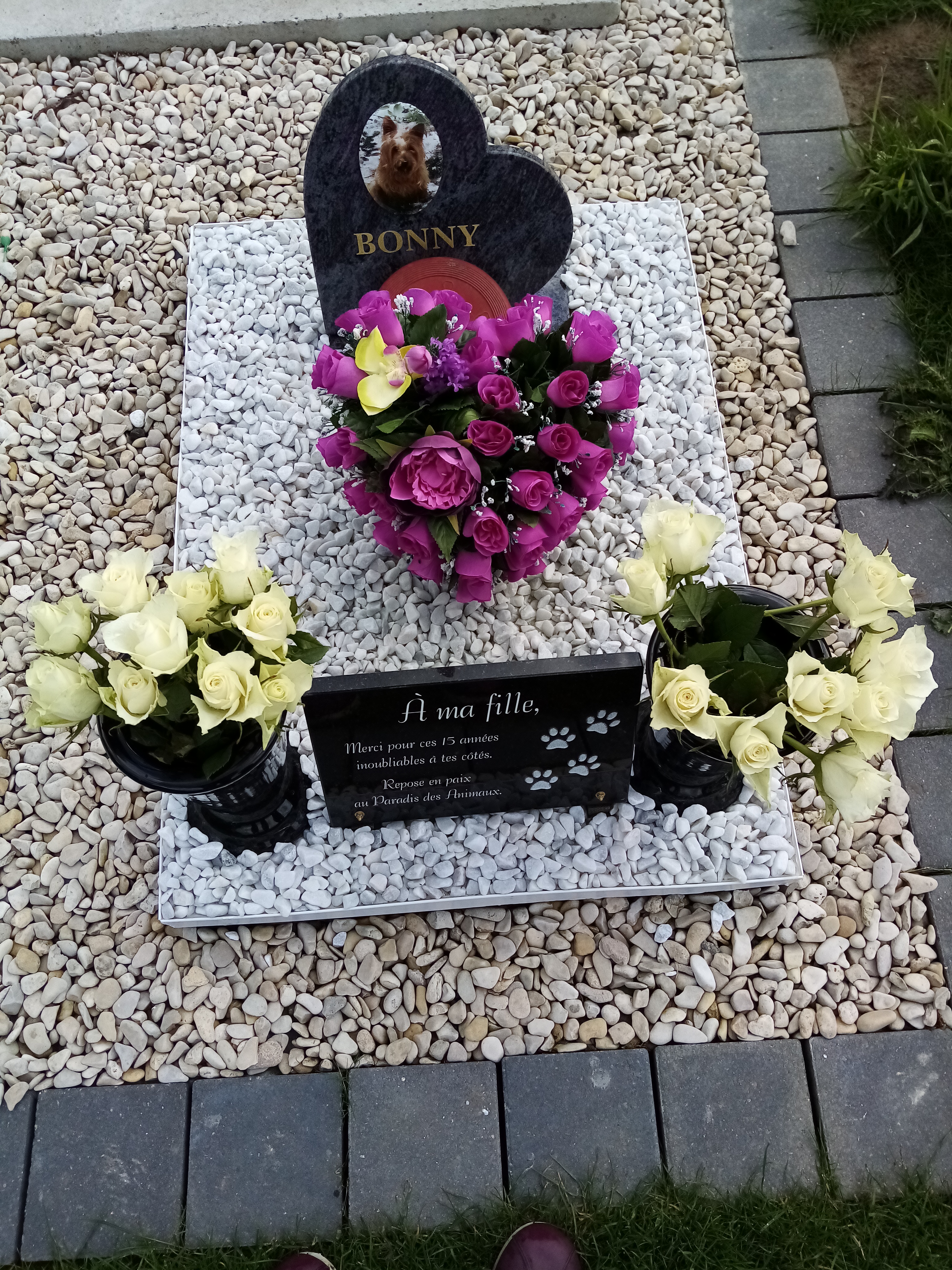 Au paradis des animaux , Aujourd’hui j’ai enterré mon chien chez vous , mon chien qui a vécu 18ans . Je l’es éduquer ! Je l’aimer ! Oui je l’aimer tellement que je ne l’oublierais jamais un chien unique ! Qui a travailler avec moi pendant des années qui a était la seul a etres présente pour moi chaque jours pendant 18ans ! Une chienne tellement gentille, adorable aimer par tout le monde .seul les personnes qui ont vraiment aimer leurs animaux comprendront la douleur que je ressent aujourd’hui J’ai toujours fait de mon mieux pour quel est une belle vie et la garder le plus longtemps possible 18ans ! Malheureusement j’ai perdu mon chien que j’aime et merci à vous de me permettre de l’avoir garder dans un lieux paradisiaque pour elle . Aujourd’hui mon souhait c’est quel repose en paix alors un grand Merci à vous de la laisser reposer en paix