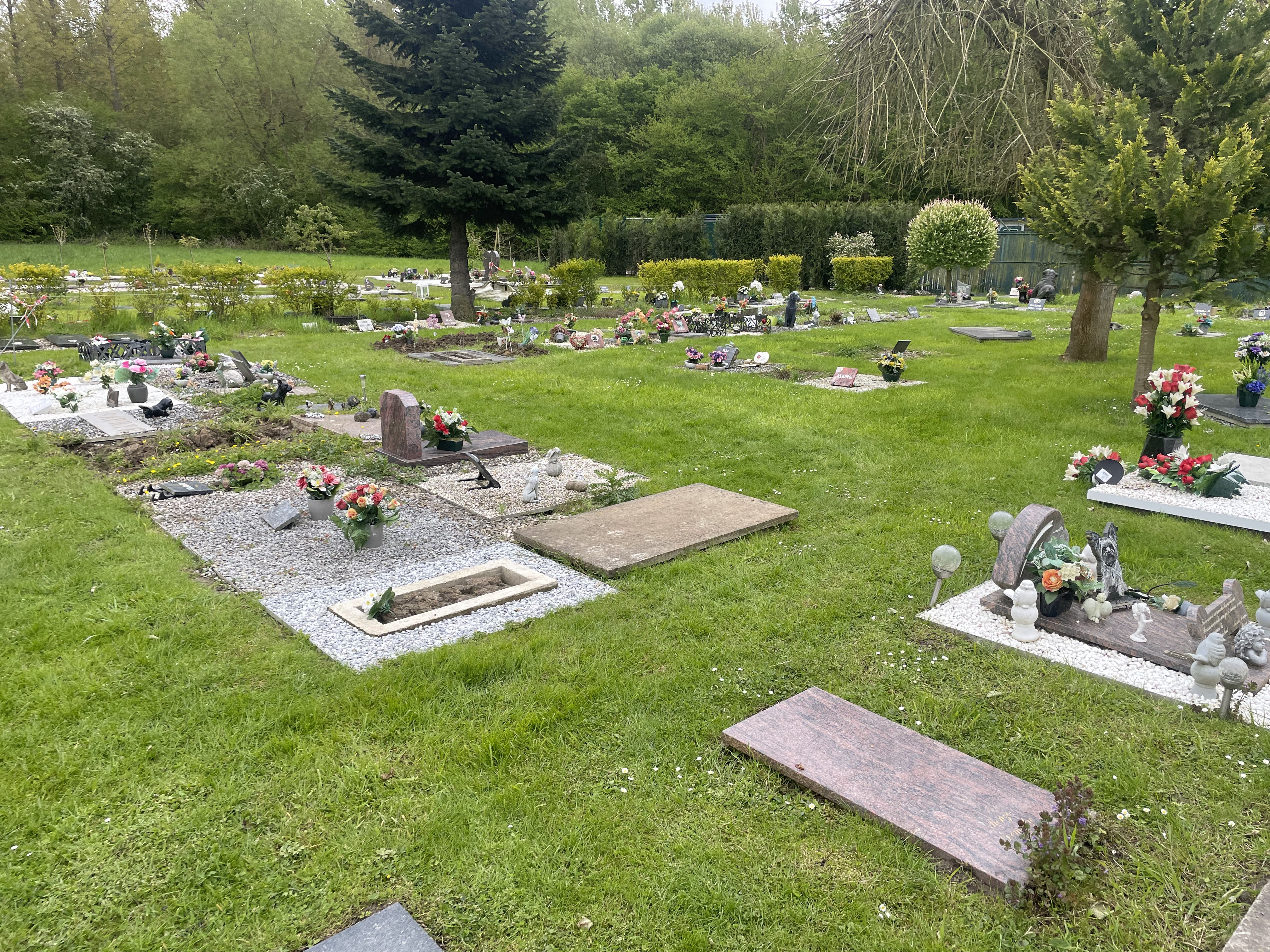 Nous avons ete enterre notre chat Hollywood et avons ete reçu par un Monsieur qui, avec beaucoup de coeur, nous a expliqué pour enterrer le chat, il l'a mis dans une house puis dans une dalle de béton ou nous pouvons mettre jusqu'à 4 animaux, il nous a laissé le temps que l'on voulait avant de refermer la dalle dessus et tout cela pour un montant de 120 euros dont cette partie de terrain qui nous appartient pour un an et tous les ans si vous voulez garder l'emplacement il demande 59 euros et il entretien le tout, c'est un cimetière magnifique, ouvert toute la journée meme le dimanche. Merci encore à cette personne ou notre petit Hollywood se trouve bien, malgres notre chagrin il a sa dernière demeure. Vous pouvez y aller les yeux fermes c'est mieux qu'une incineration chez le veterinaire ou vous ne pouvez plus aller le voir.